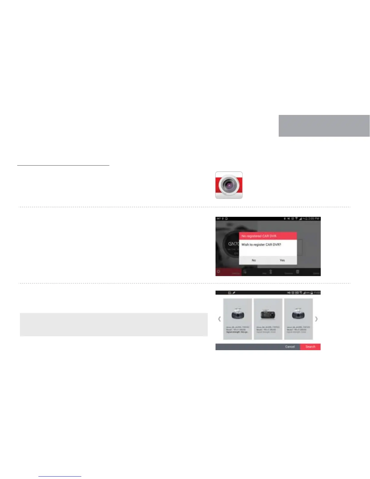 It is searching and displaying registered dash cams with image, SSID and