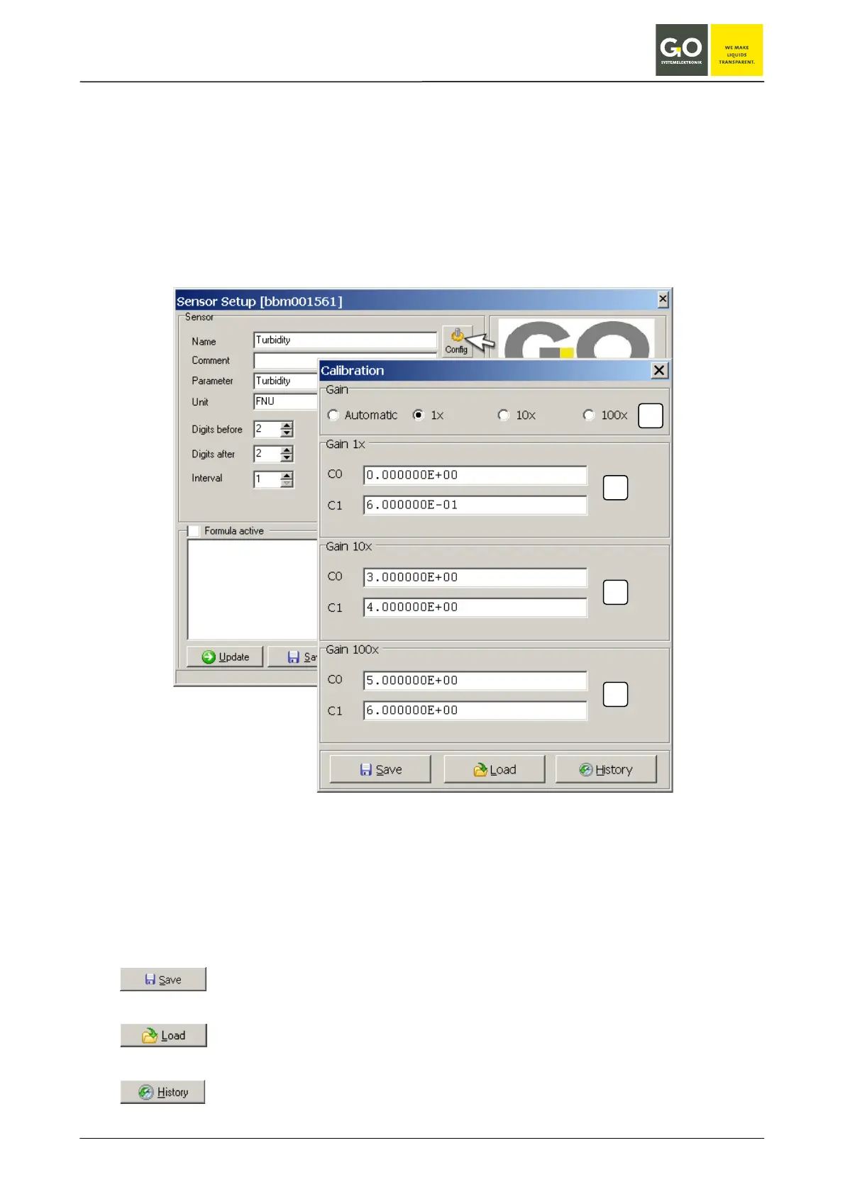 Click the Config button in the Sensor Setup window of the particular sensor.