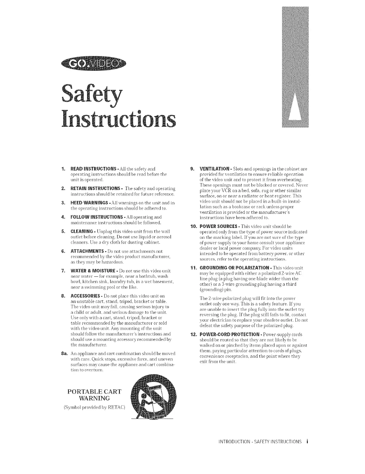 INTRODUCTION- SAFETYINSTRUCTIONS i