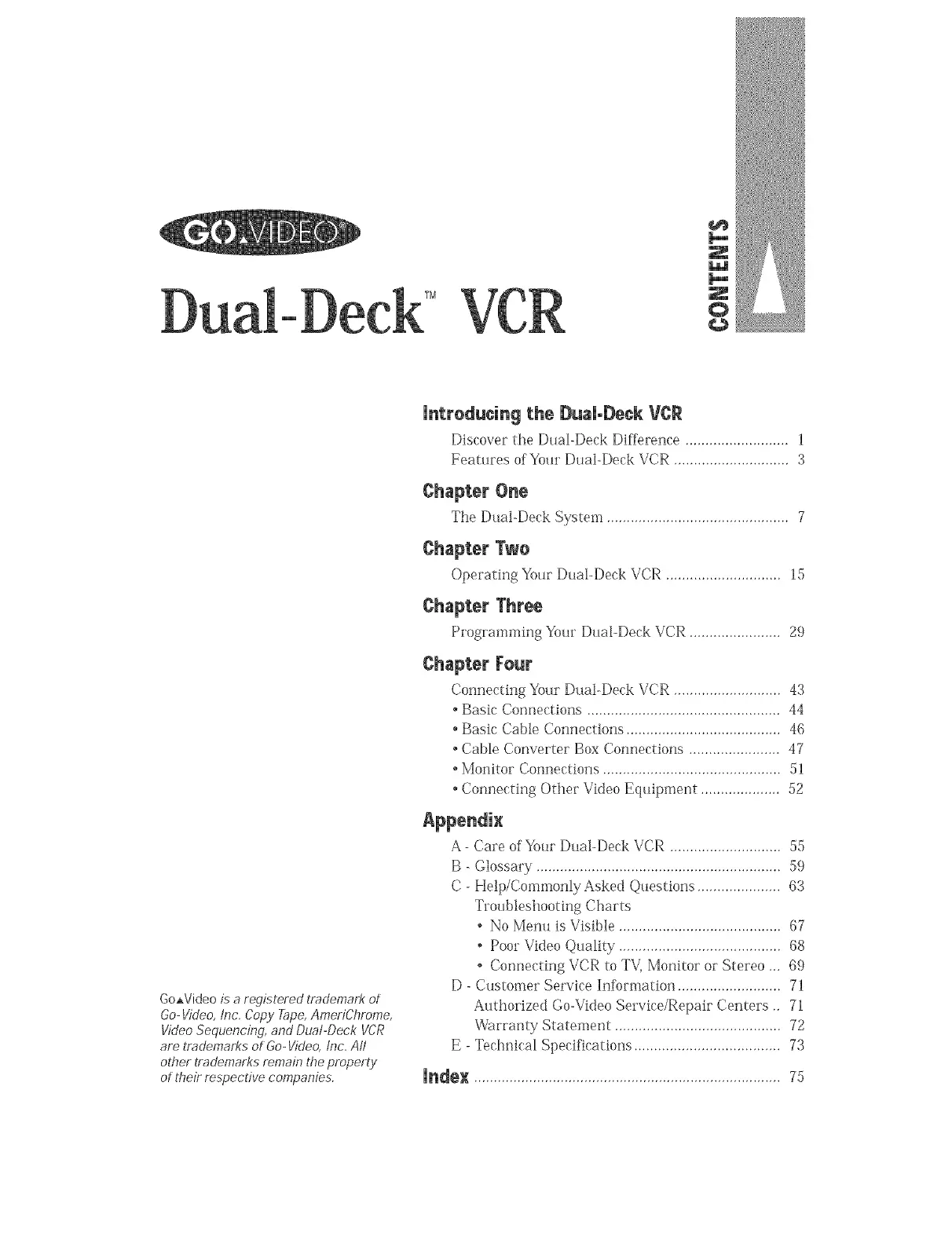Features of Yon" Dtlal-De(k VCR ............................. 3