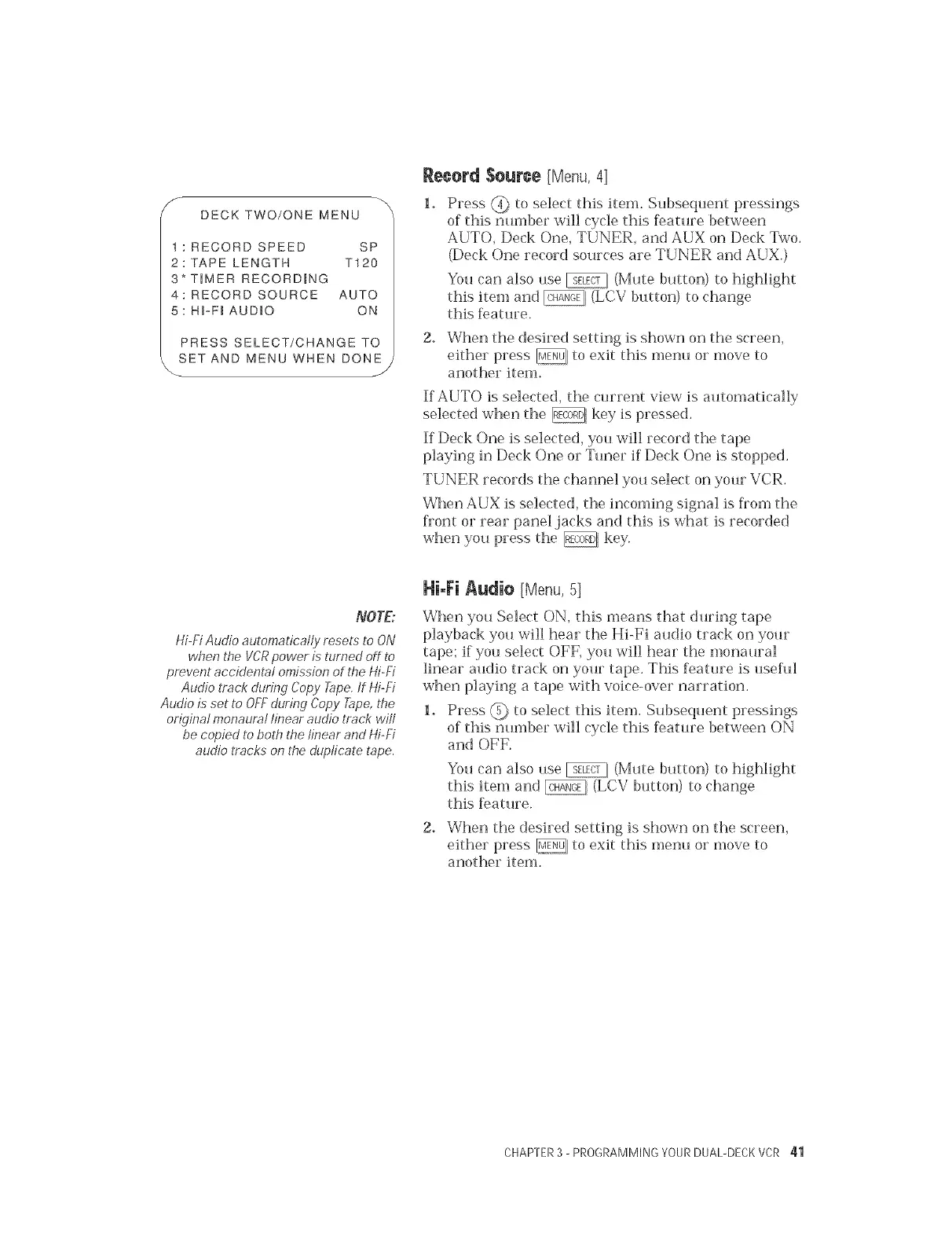 CHAPTER3 - PROGRAMMING YOURDUAL-DECKVCR 41