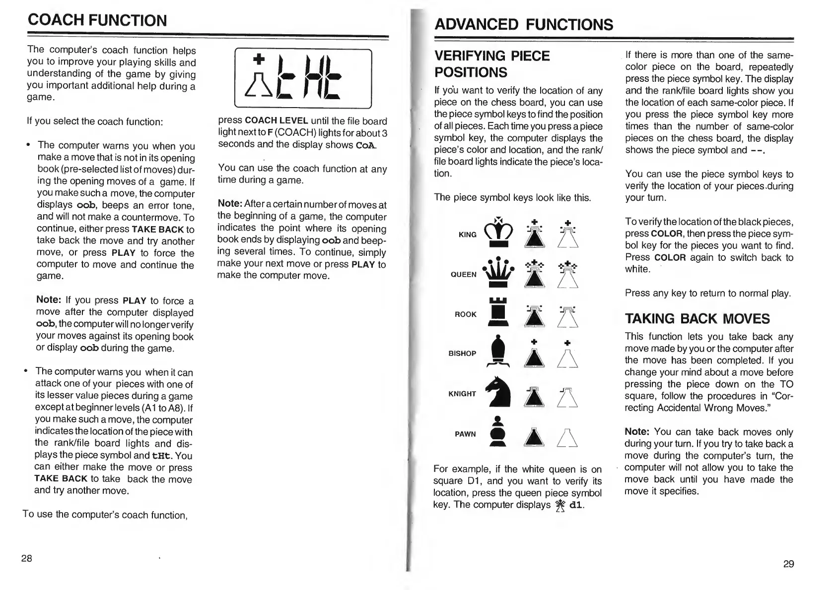 Go Partner 1680X - COACH FUNCTION; ADVANCED FUNCTIONS; Verifying Piece Positions; Taking Back Moves