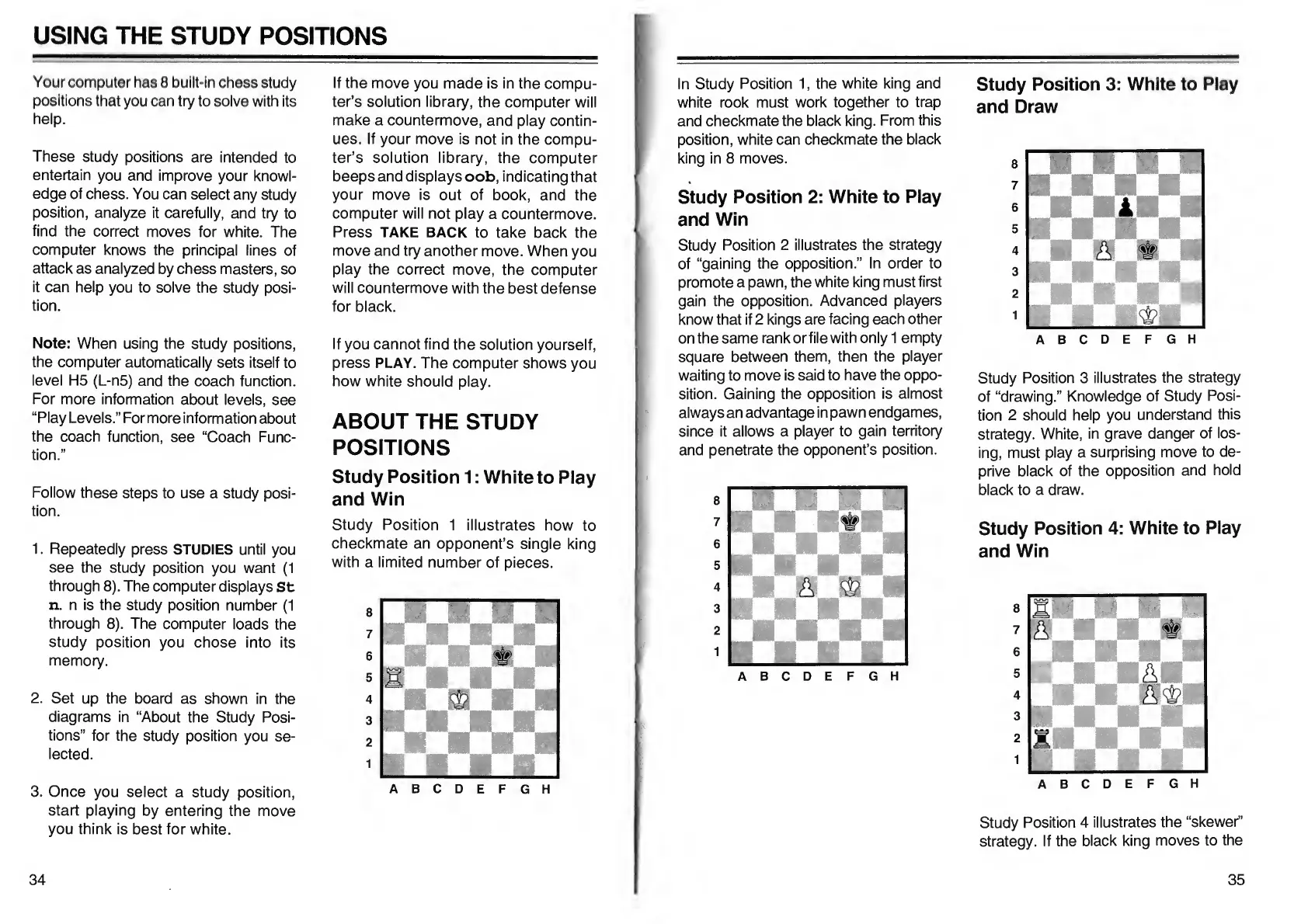 Go Partner 1680X - USING THE STUDY POSITIONS; ABOUT THE STUDY POSITIONS; Study Position 1: White to Play and Win; Study Position 2: White to Play and Win