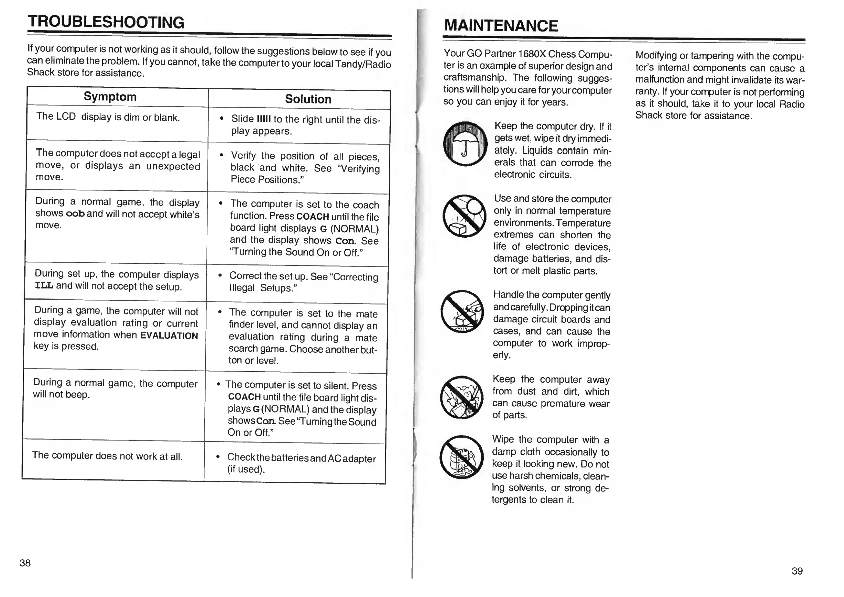 Go Partner 1680X - TROUBLESHOOTING; MAINTENANCE