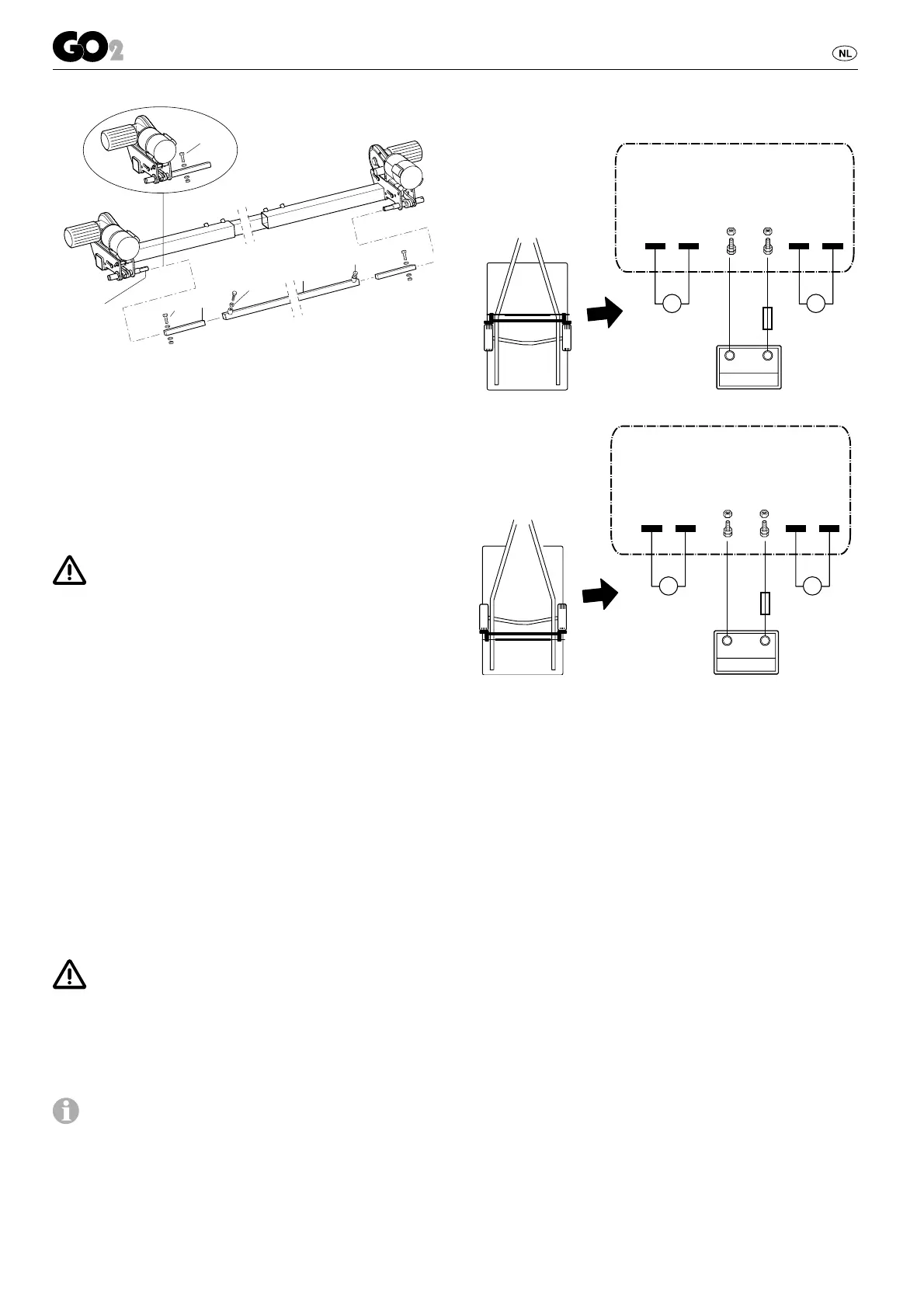 van de tractiemotoren even lang zijn! Overtollige kabel moet