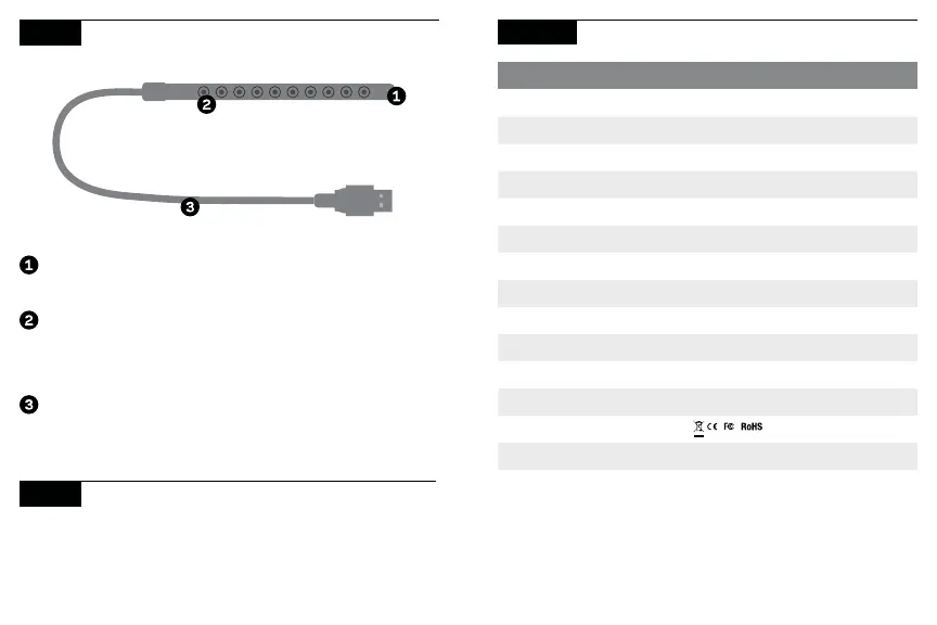 ライト:(出力) 10 個の温白色 LED、合 計 0.7 ワット