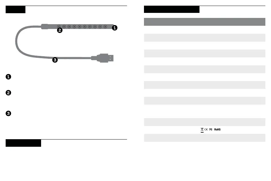 Entrada: (USB macho) 5V; 0,15A (0,7W máximo)