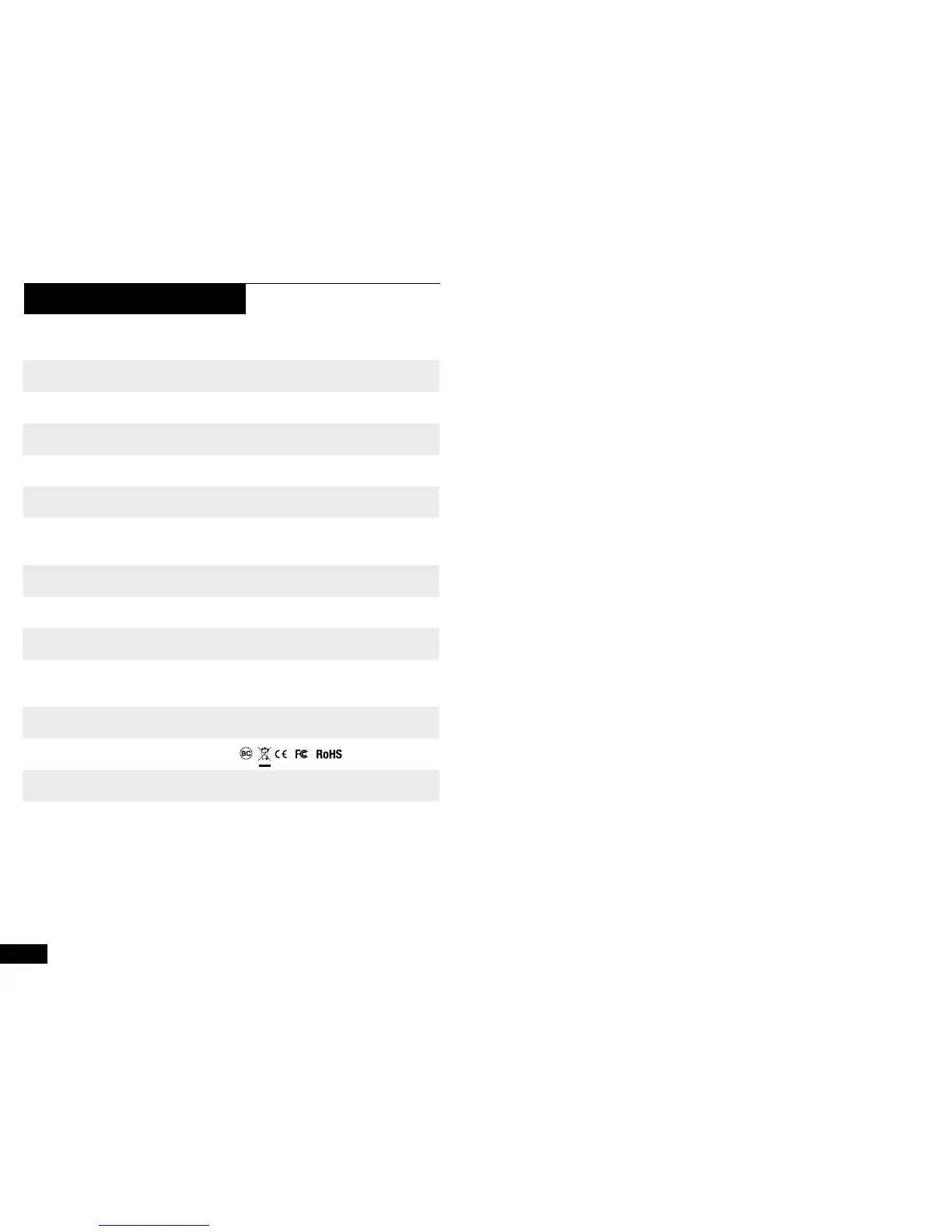 USB Cord (Input) 5V, up to 0.3A (1.5W max)