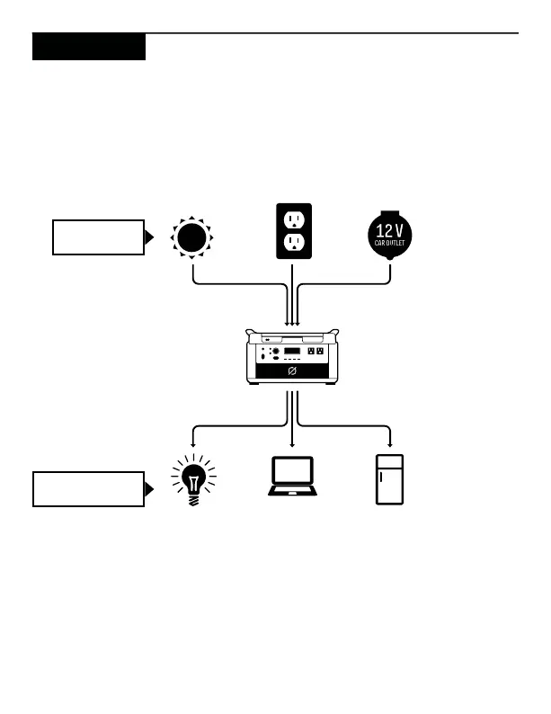 GOAL ZERO Yeti 1000 - How the Goal Zero Yeti Works; Charging and Powering Diagram