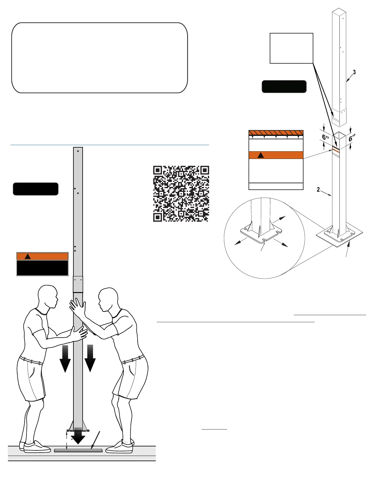 the pole and base plate. Top Pole must cover upper orange area of sticker.