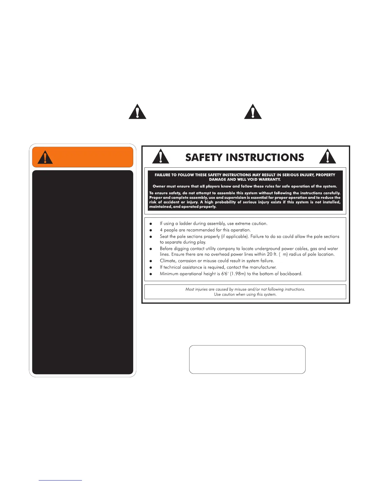 Owner must ensure that all players know and follow these rules for safe operation of the system.