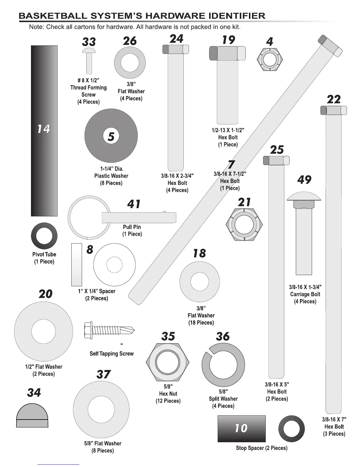 Goaliath B2251 - Basketball System Hardware Identifier; Parts Identification Guide