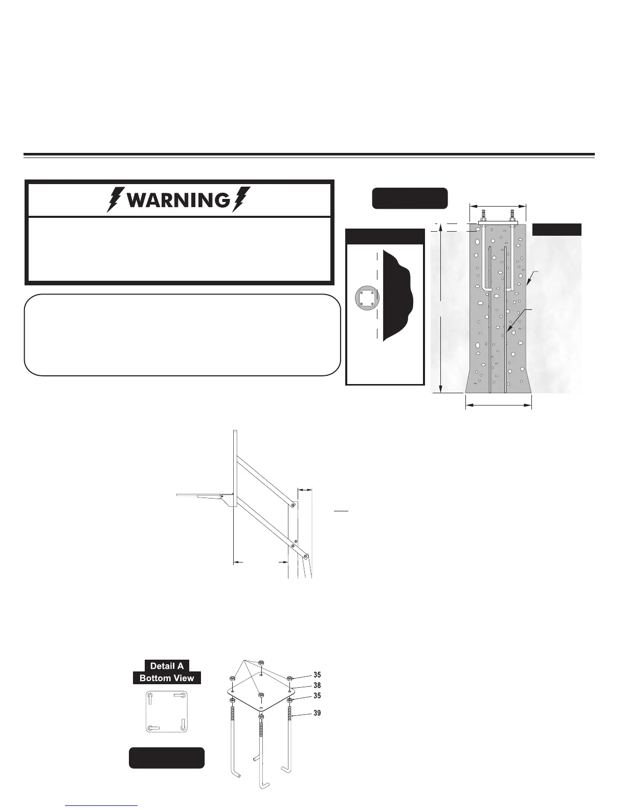Note: Minimum of 18” rear clearance is required behind pole.