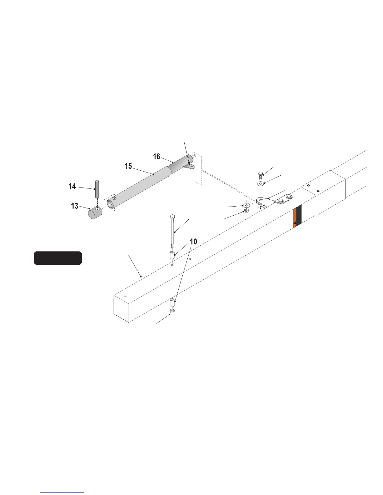 Secure two stop spacers (#10) to pole, as shown in Figure 6, using one hex