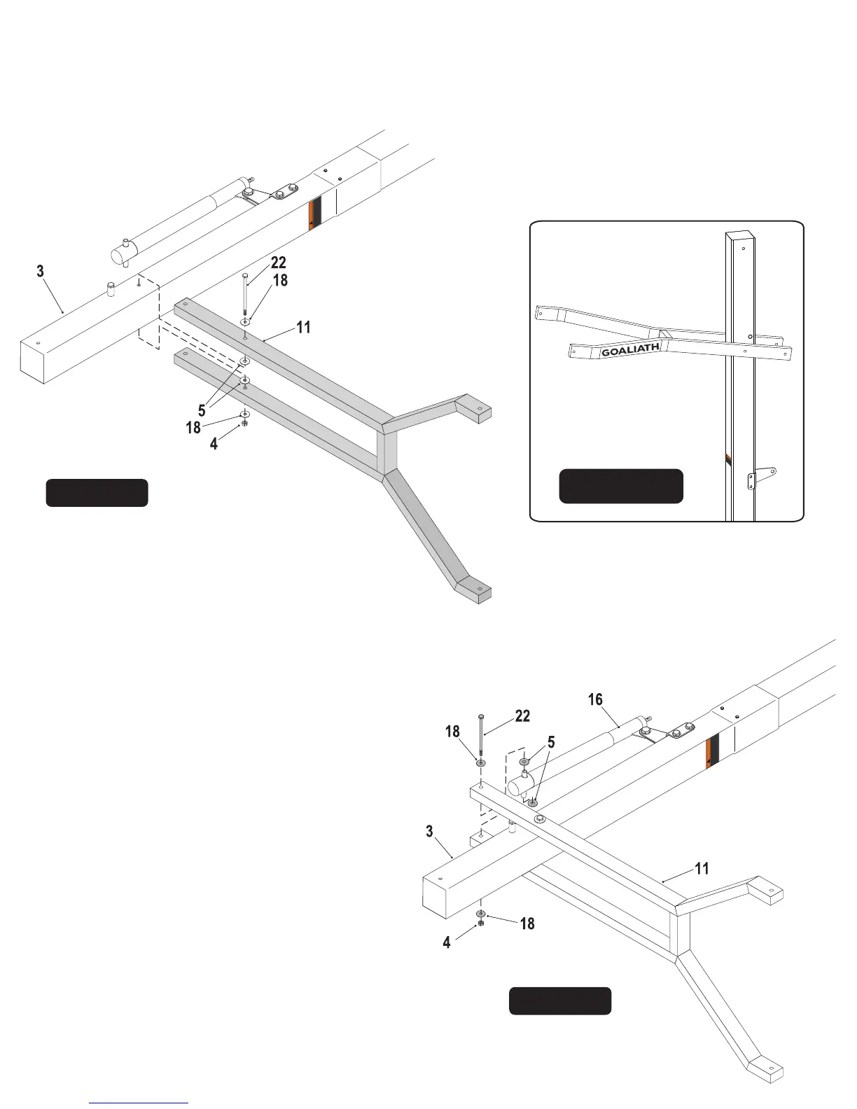 Goaliath B2251 - Lower and Upper Arm Installation; Connecting Lower Arms to Top Pole; Securing Actuator to Lower Arms