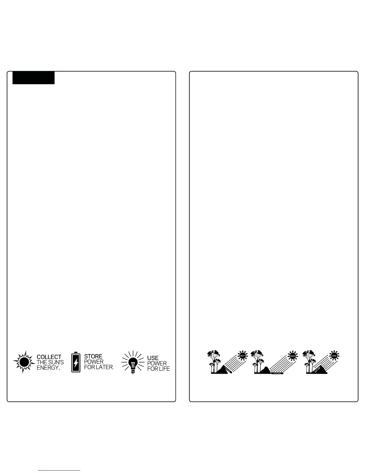 panel. STORE the power in a recharger. USE the recharger to power your