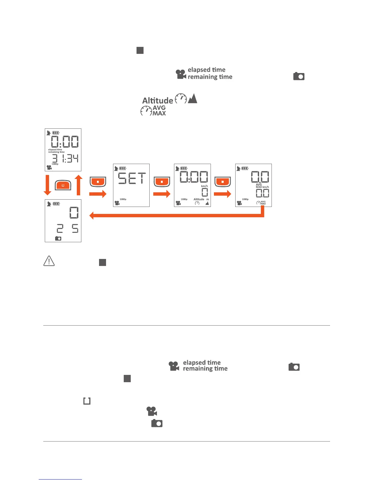 Push the Mode buon ( ) shortly to toggle trough the available display