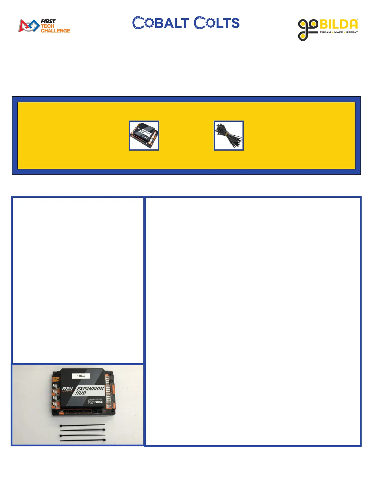 B. Using 4 Zip Ties (1 in each corner), secure the REV Hub as