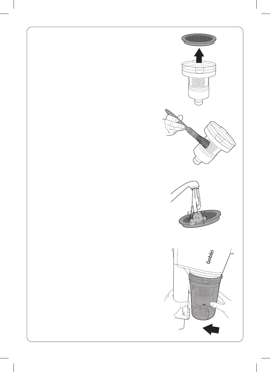 4. Rinse the dust canister, filter assembly