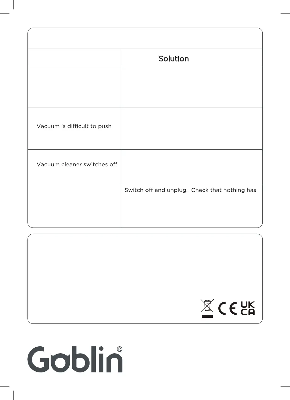 is restricted. Unplug the vacuum, empty the
