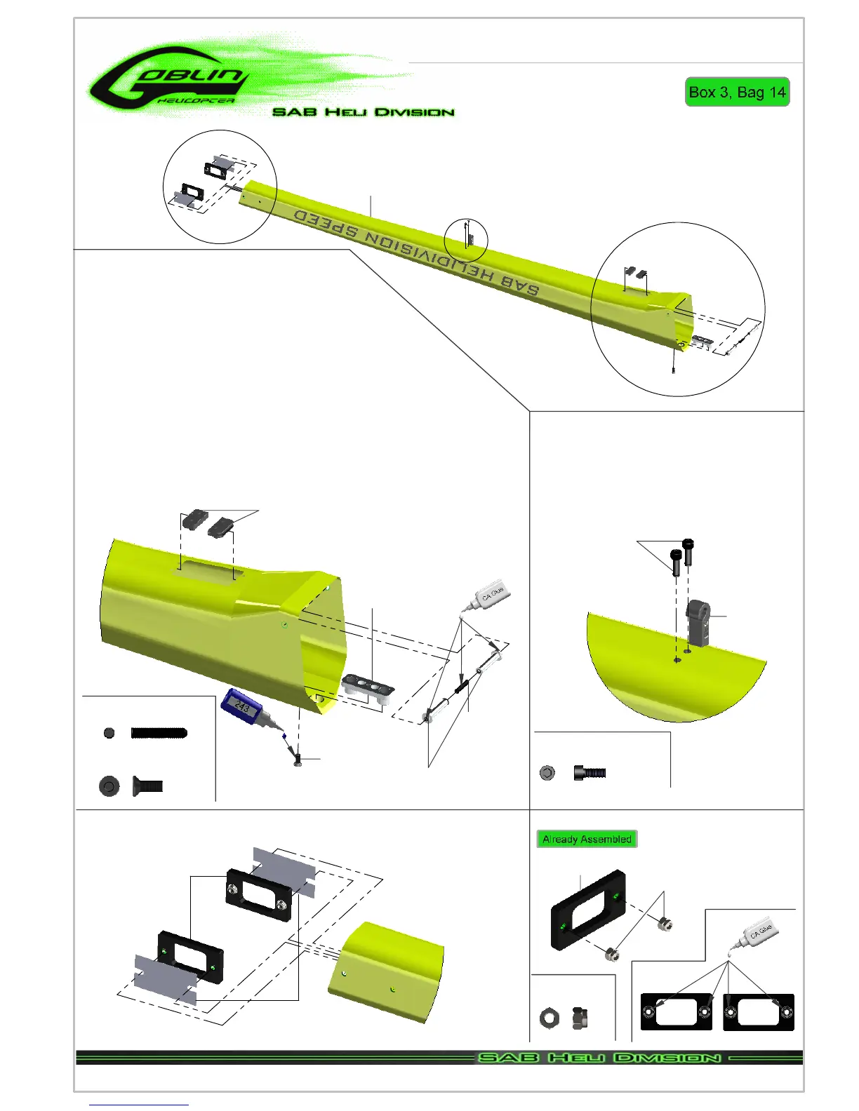 into the plastic parts. Check the tail servo can fit, if necessary carefully sand