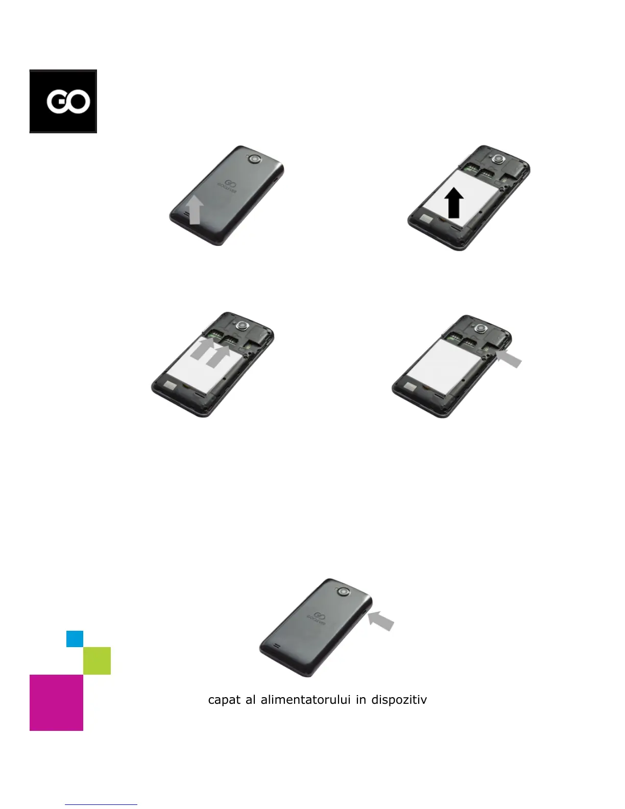 Introduceti un capat al alimentatorului in dispozitiv si celalat capt intr-o