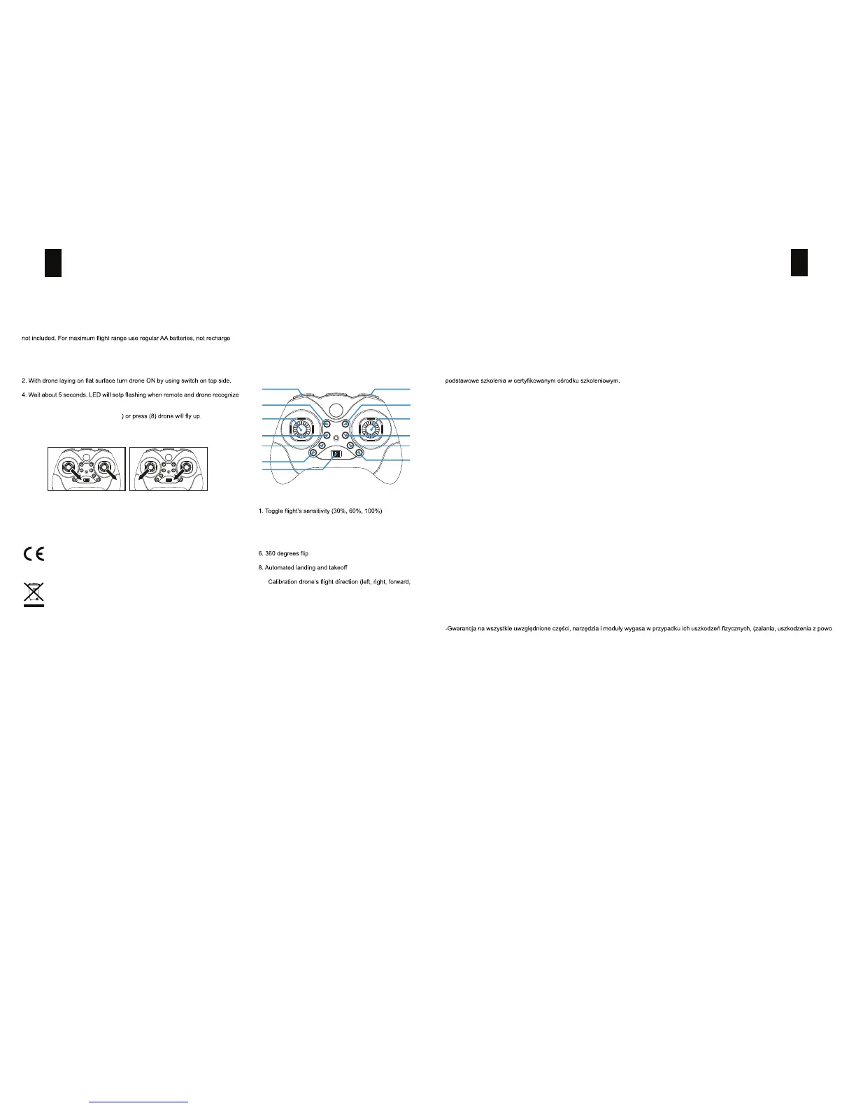 UPEWNIJ SIĘ, że pilot jest zasilany bateriami AA o napięciu 1.5V, ponieważ zapewnia to maksymalny zasięg lotu. Użycie ogniw AA o mniejszym