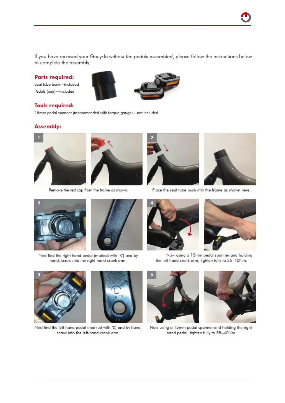 Gocycle G2 - Recommended Assembly Sequence; Pedal and Frame Assembly