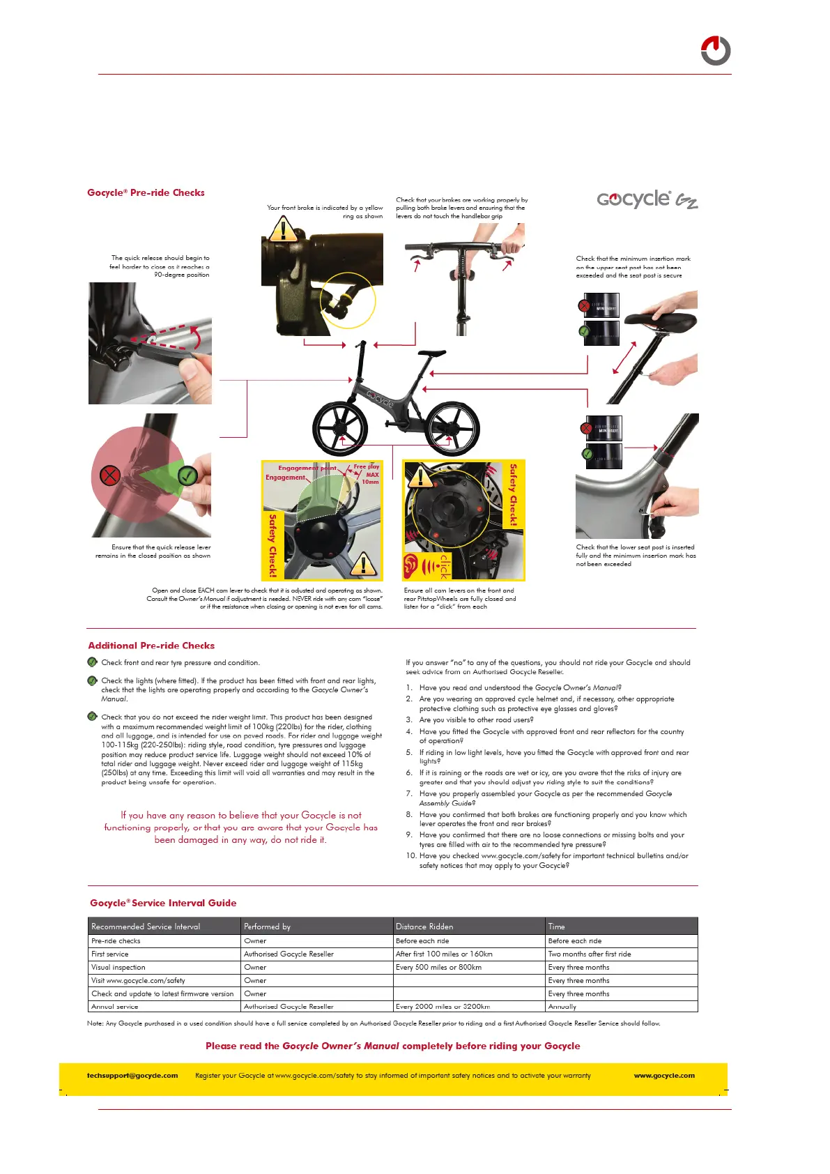 Gocycle G2 - Pre-Ride Checks and Service Interval