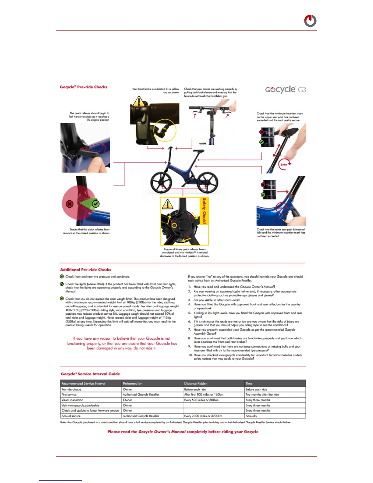 Gocycle G3 - Pre-ride Checks and Service Interval