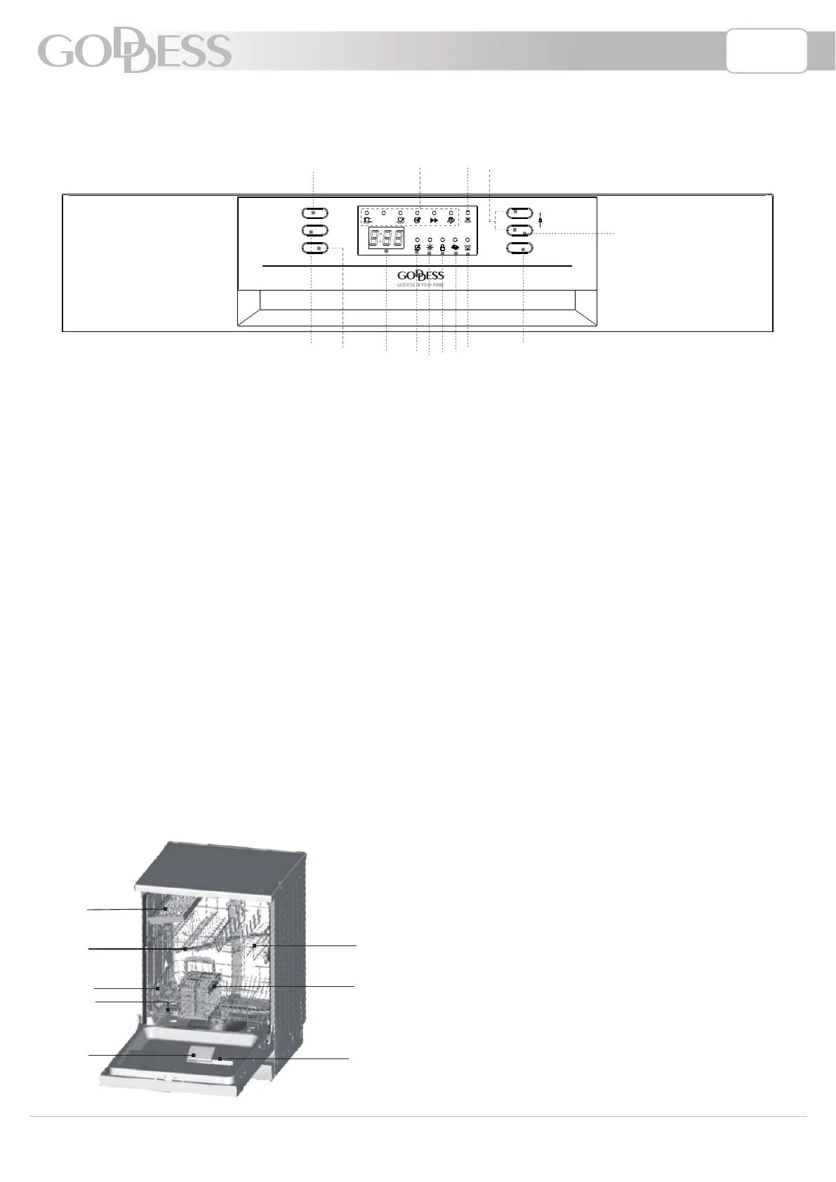 9. Kontrolka doplnenia leštidla: Rozsvieti sa, keď je potrebné doplniť dávkovač.