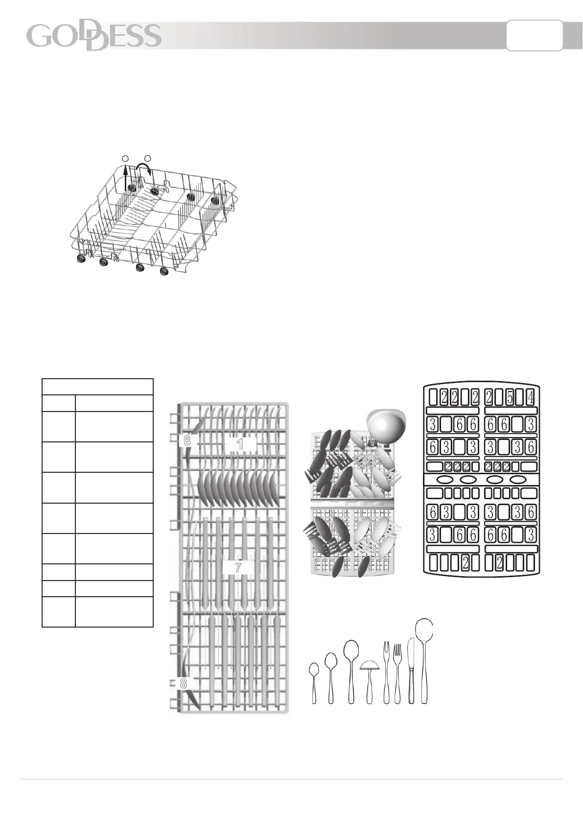 Príbory by mali byť umiestnené do koša na príbory rukoväťou dole. Ak má kôš postranné koše,