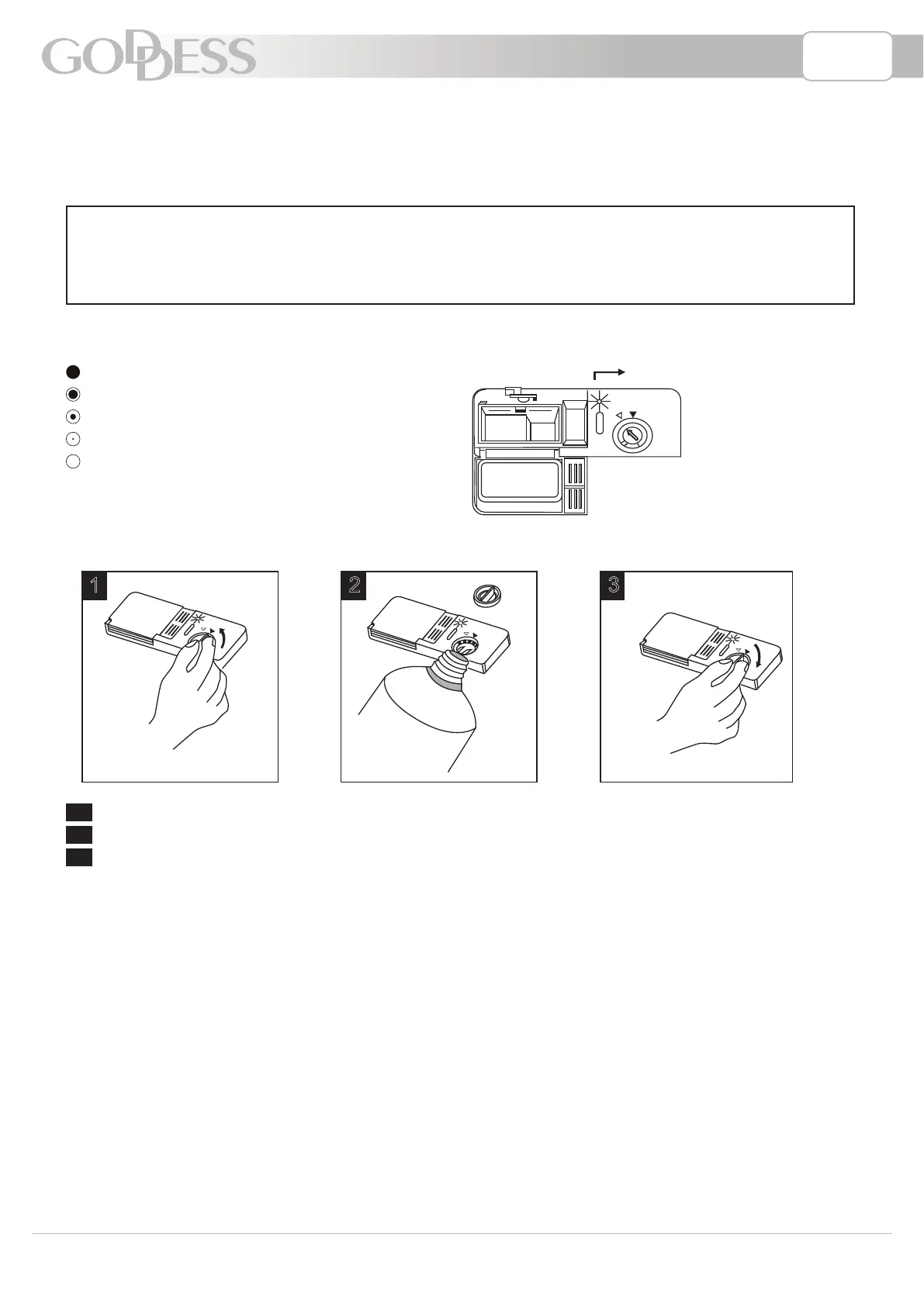 container is full, the whole indicator will be dark. As the rinse aid diminishes, the size of