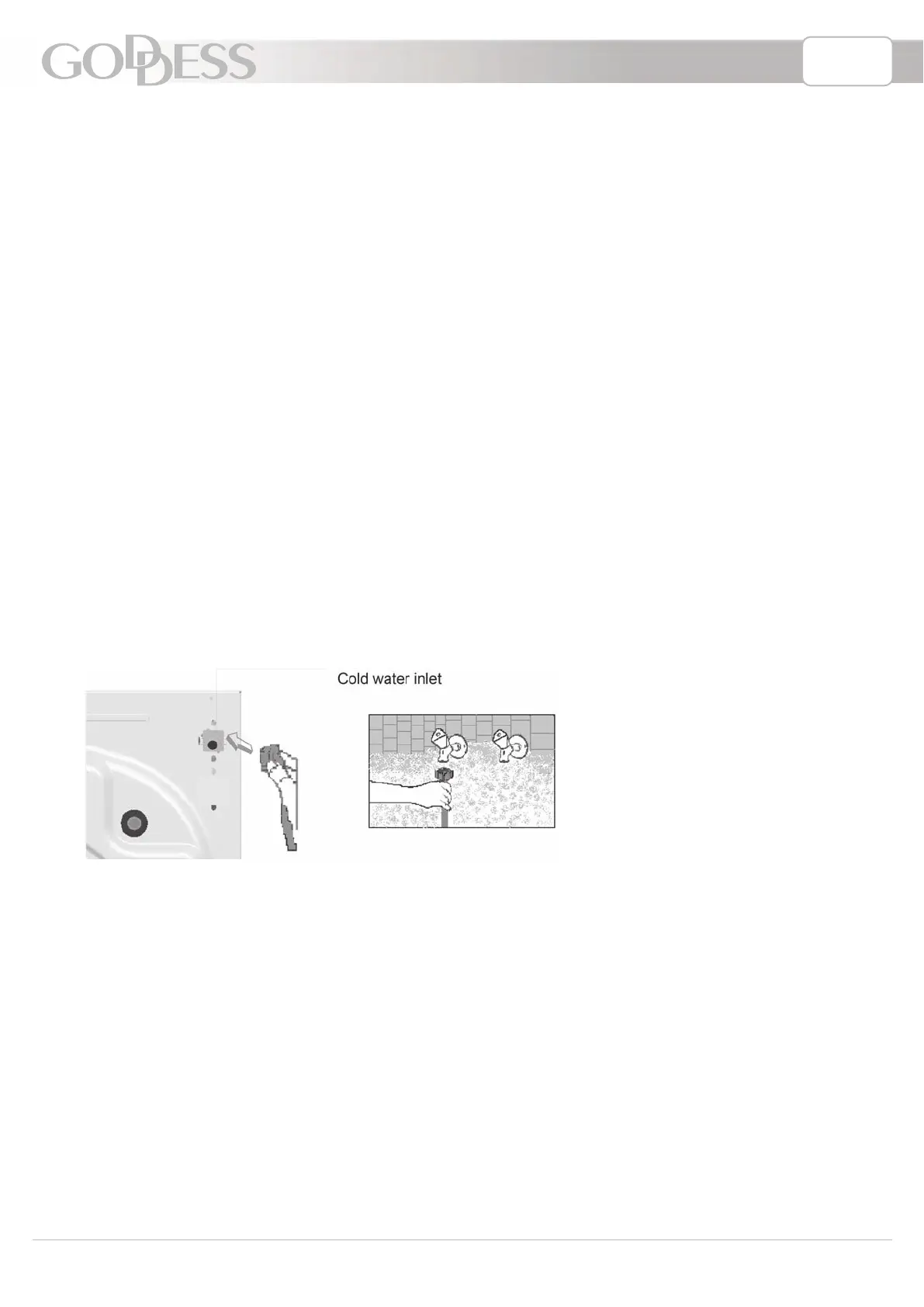 Be sure that water inlet hoses are not folded, broken or crushed.
