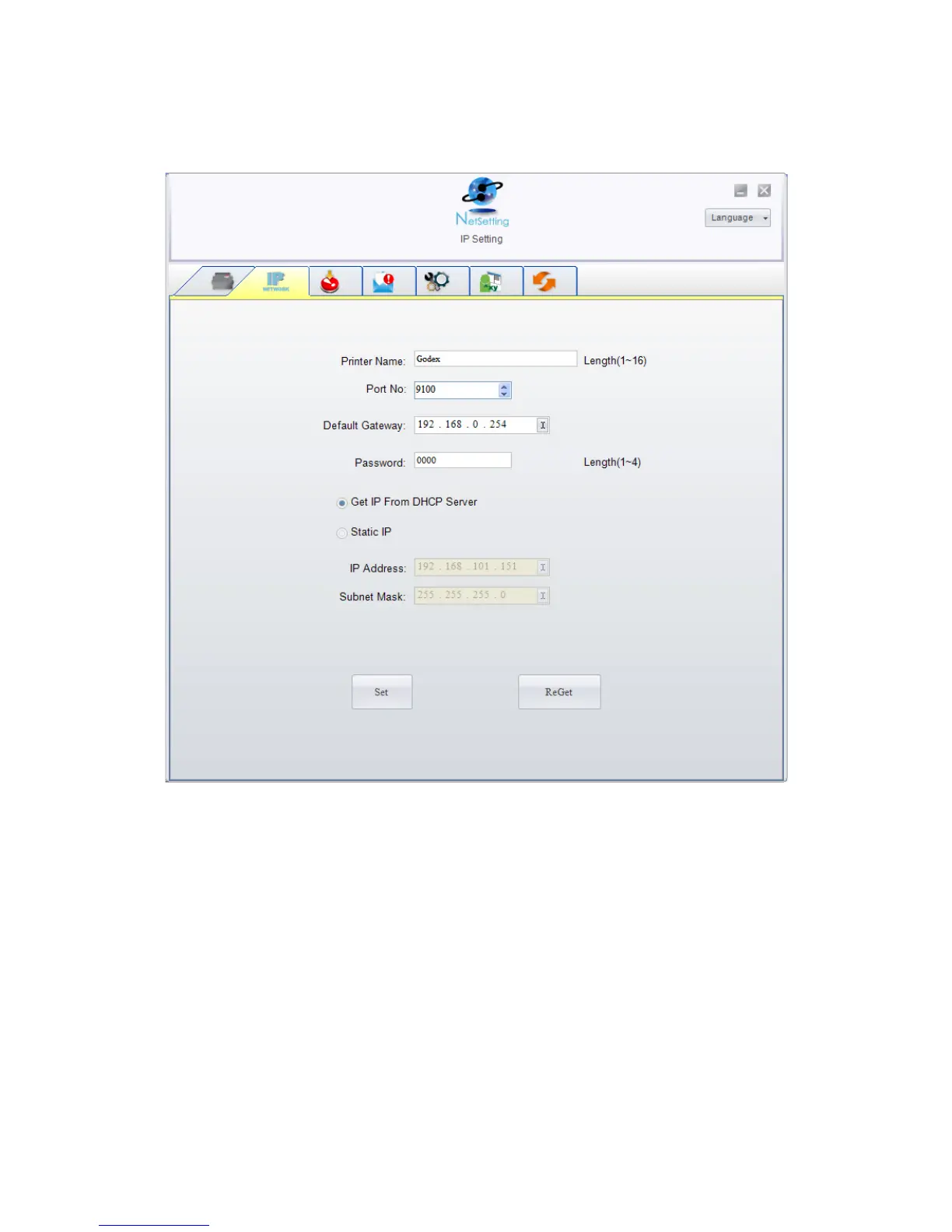 You can press “Set” button to apply the settings and “ReGet” button to refresh the
