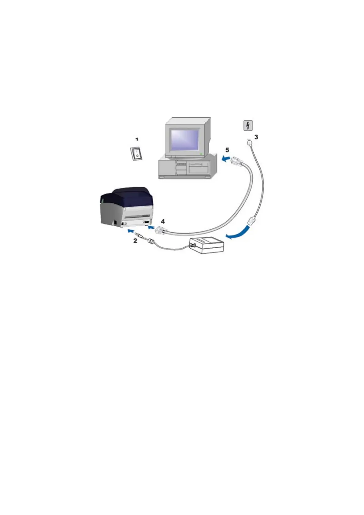2. 將隨機所附之電源線一端接於一般家用電源,另一端接於條碼機之電源插座。