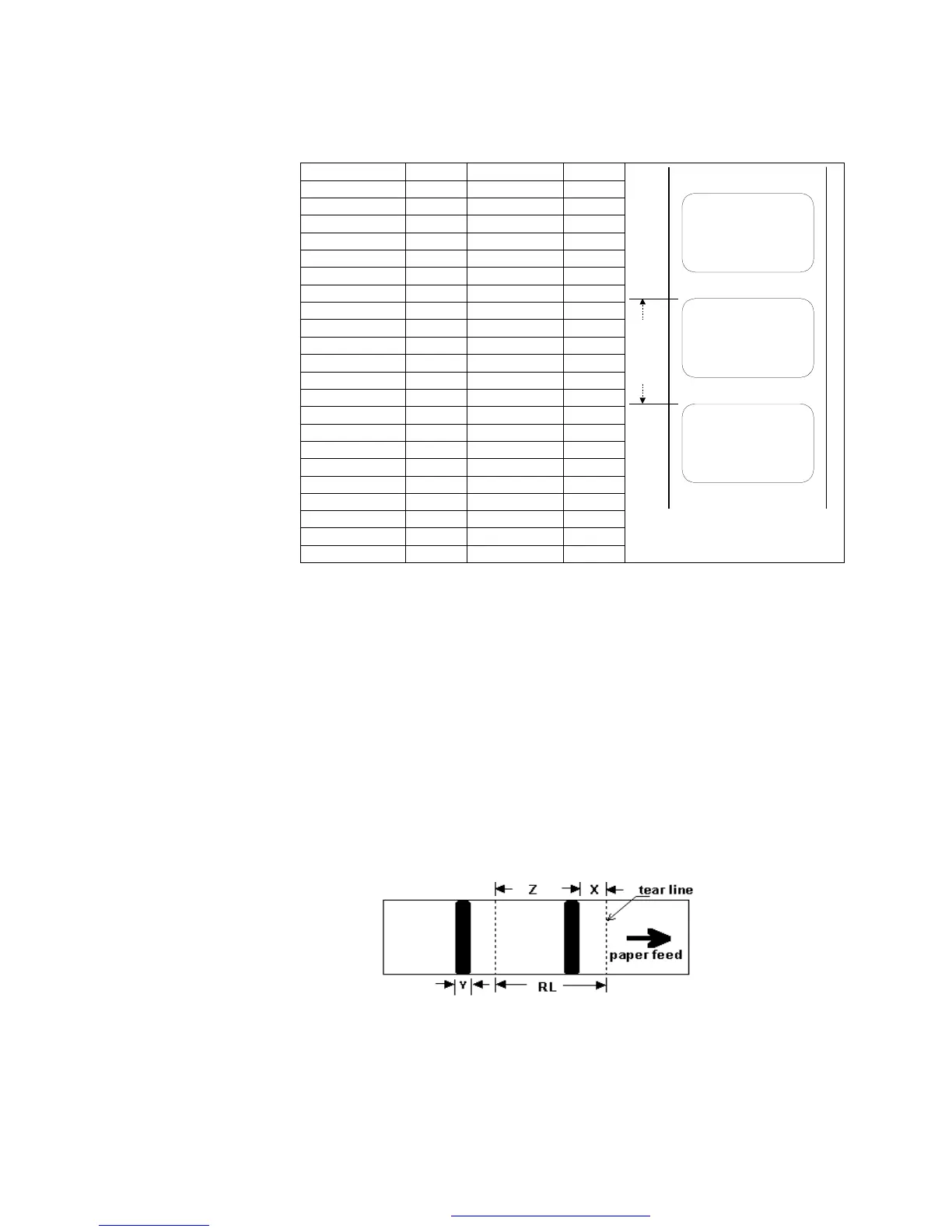 Z = distance between tear line and the edge of black strip against paper feed direction (in mm).