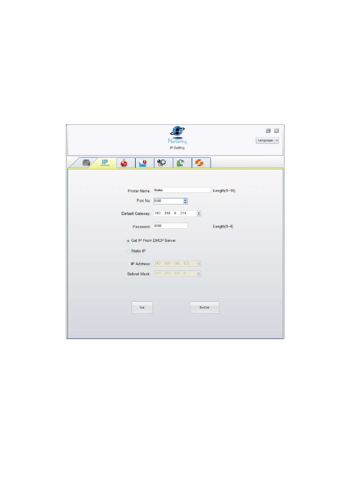 You can press “Set” button to apply the settings and “ReGet” button to refresh the setting values.