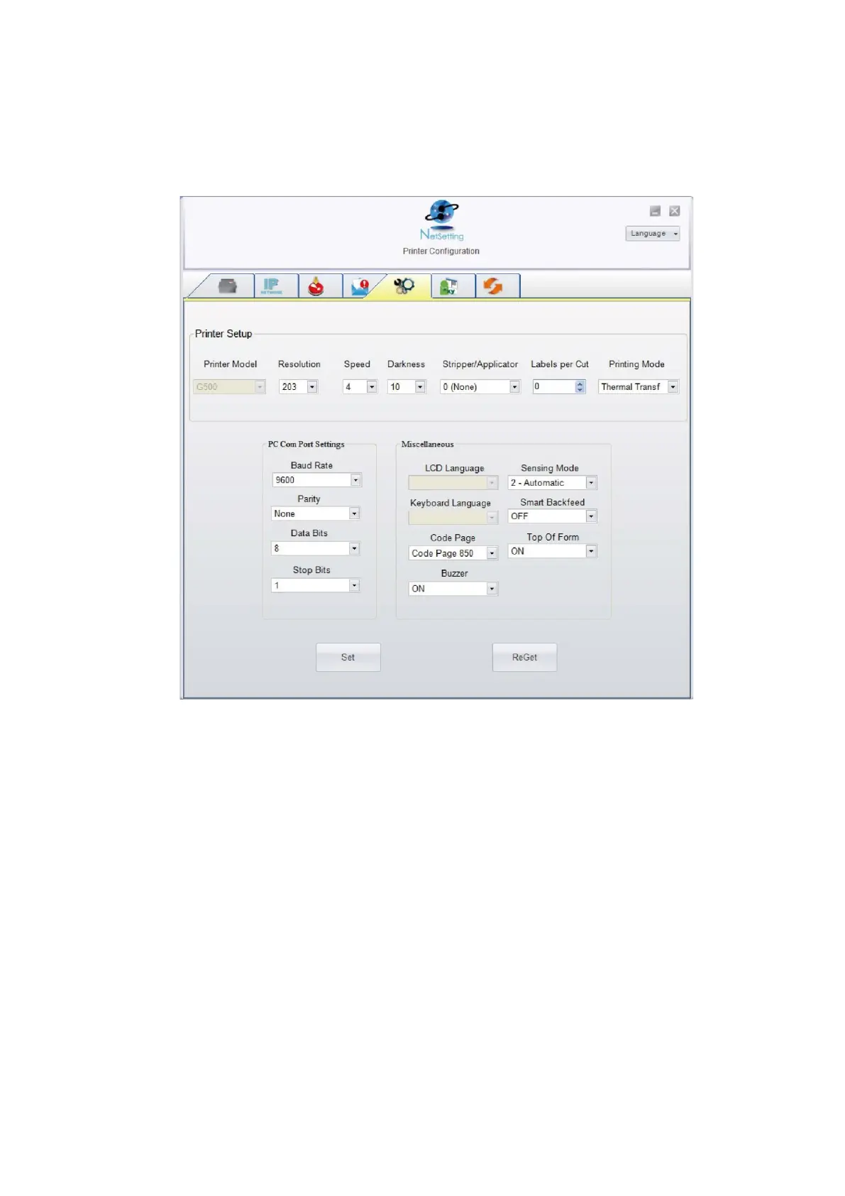 You can press “Set” button to apply the settings and “ReGet” button to refresh the setting values.