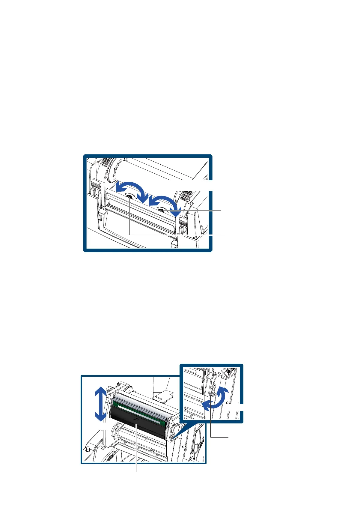 1. To move the print head in direction A as indicated by the blue arrow, turn the adjustment wheel