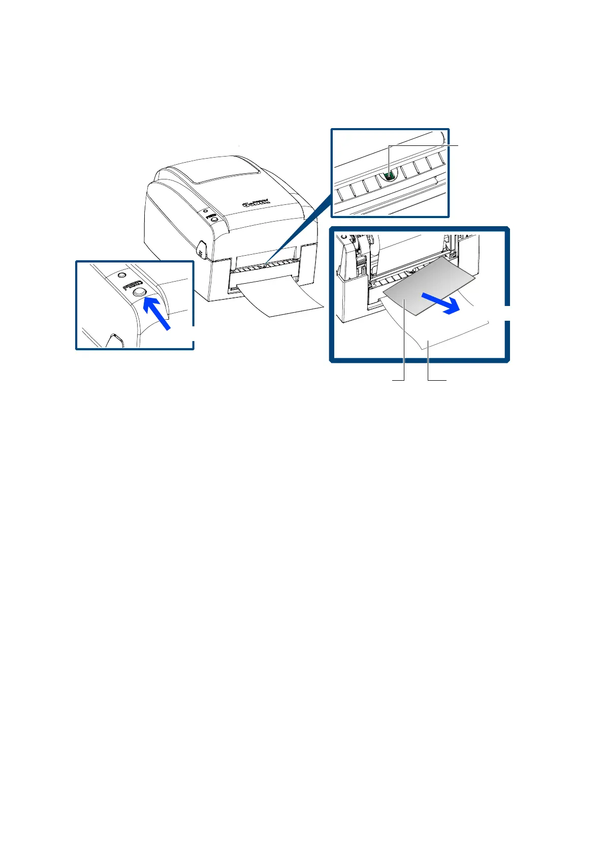 Press the FEED button to feed the label. The label will be peeled from the liner while it passes through the label