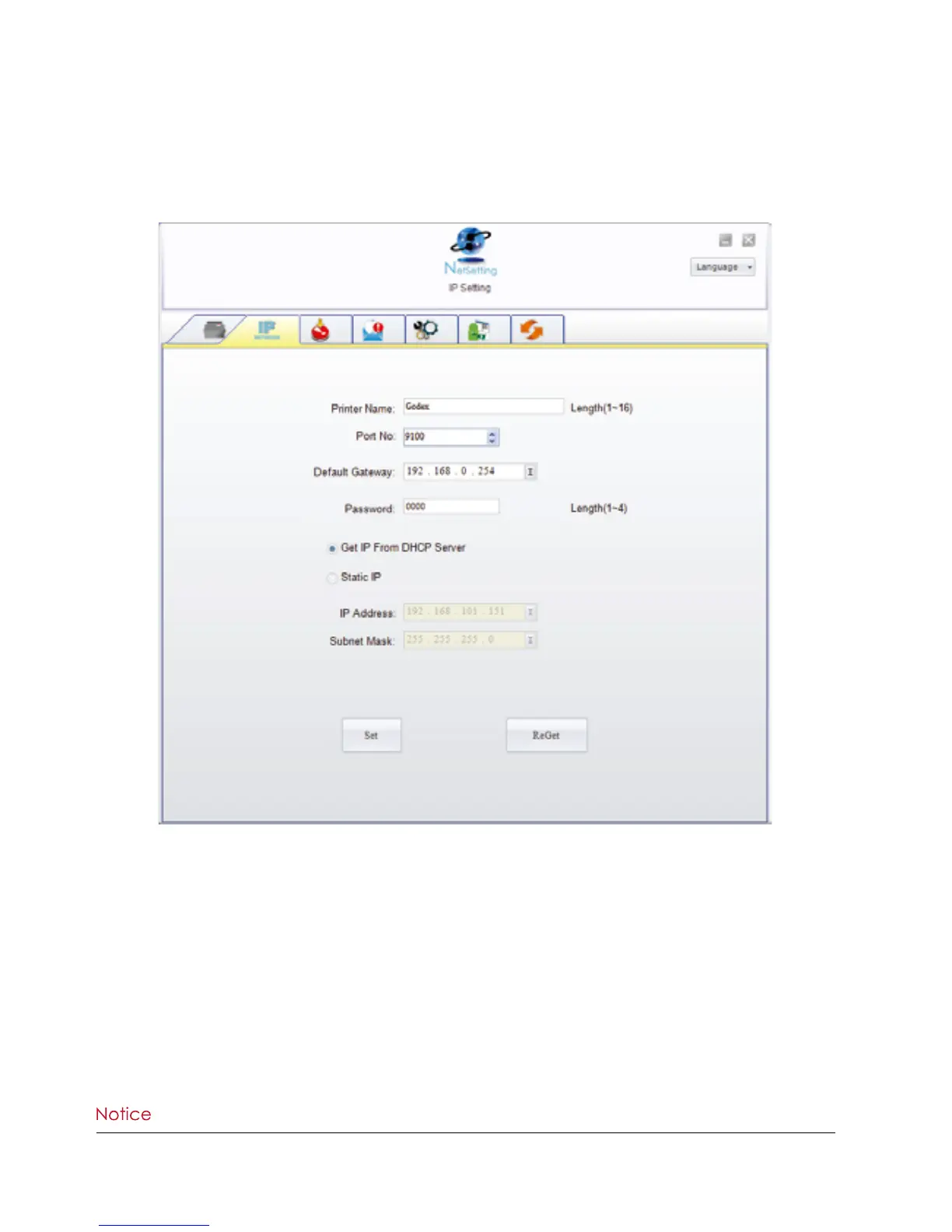 You can press “Set” button to apply the settings and “ReGet” button to refresh the setting values.