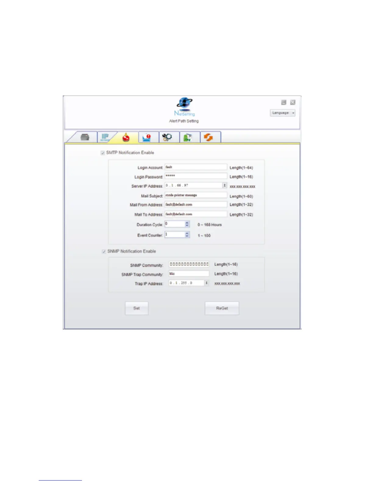 You can press “Set” button to apply the settings and “ReGet” button to refresh the setting values.