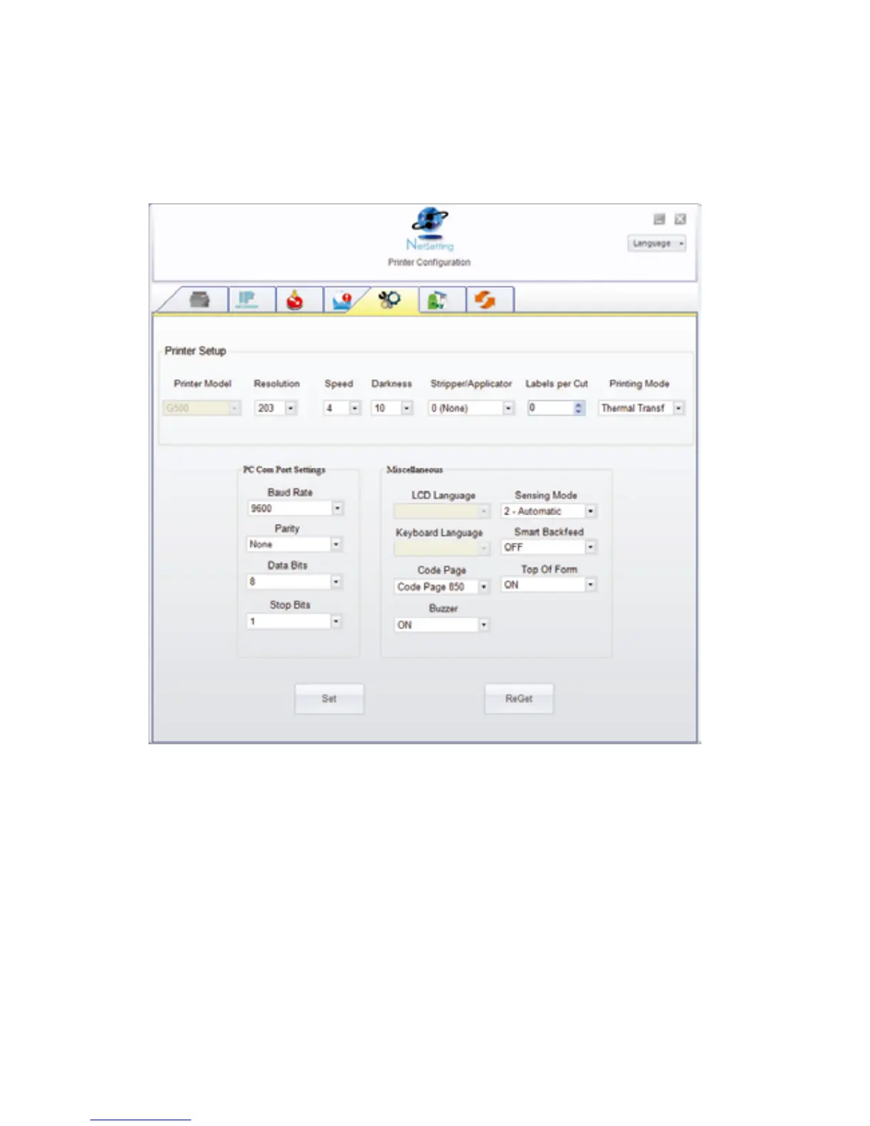 You can press “Set” button to apply the settings and “ReGet” button to refresh the setting values.