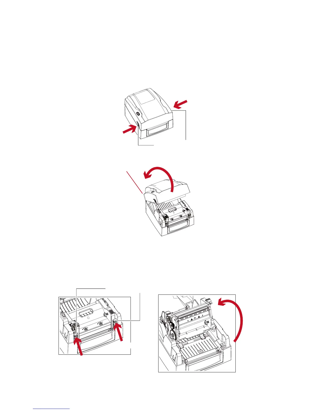 Place the printer on a flat surface. Open the printer cover by pressing the release buttons on both sides of the printer