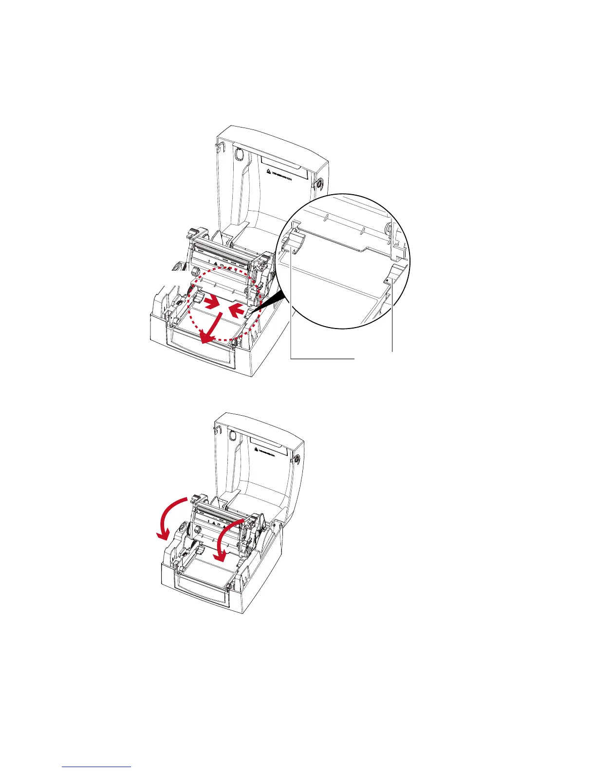 5. Close the printing mechanism and top cover to complete the label loading.