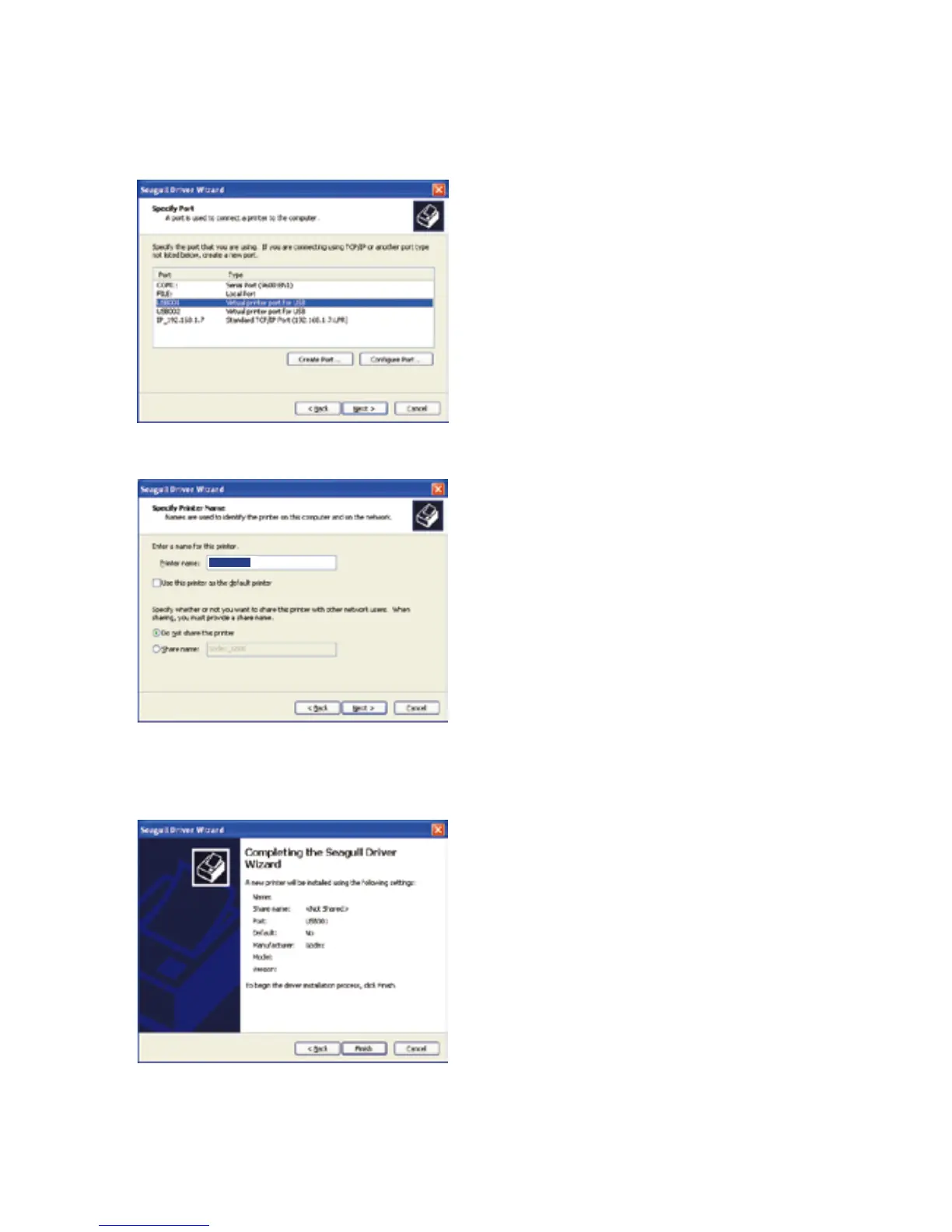 4. Specify the port used to connect the printer to the host computer.