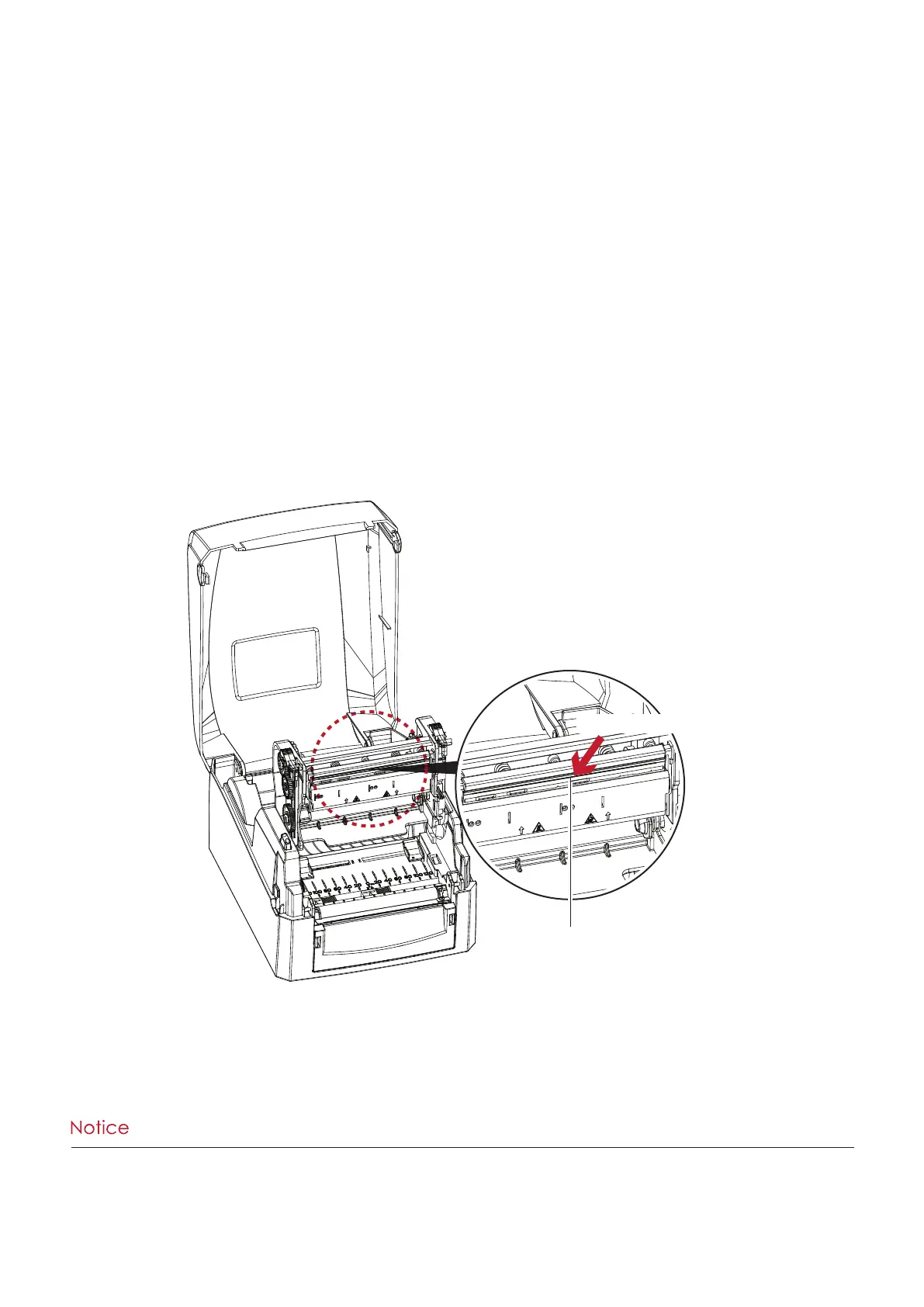 5. To remove any label residue or other dirt from the print head (see red arrow), please use a soft lint-free cloth