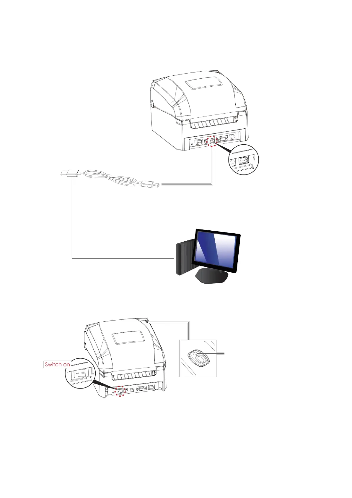 4. Switch on the printer. The LED indicator should now lights up.