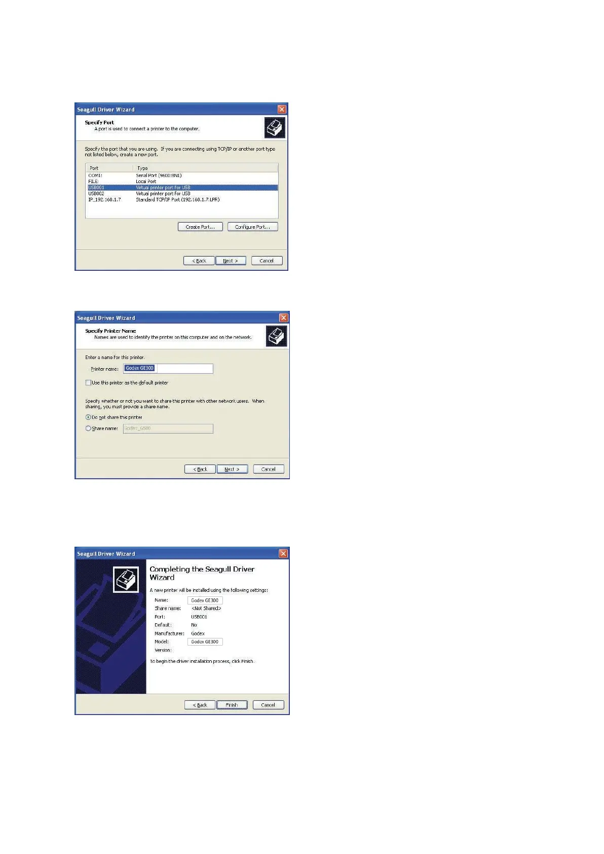 4. Specify the port used to connect the printer to the host computer.